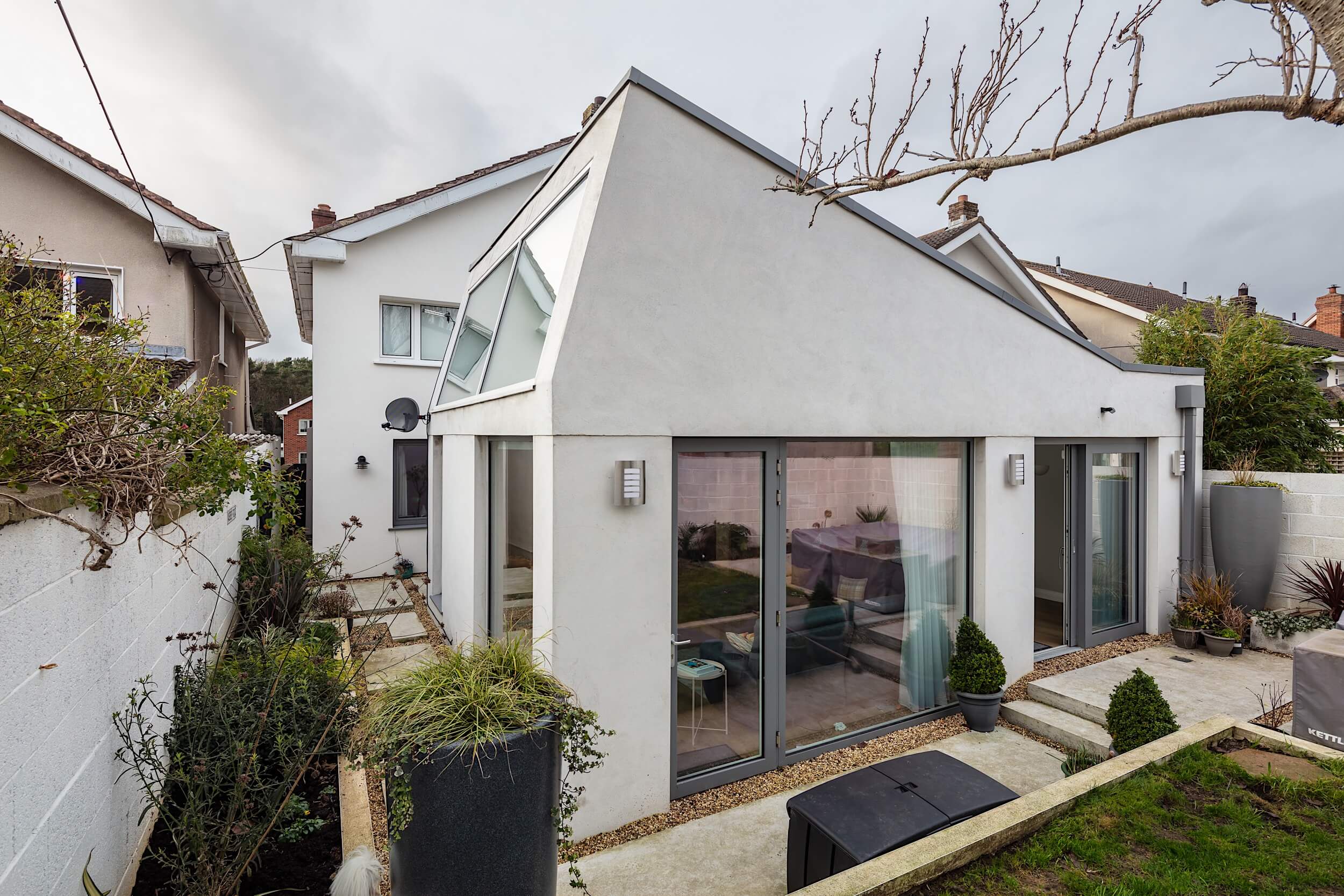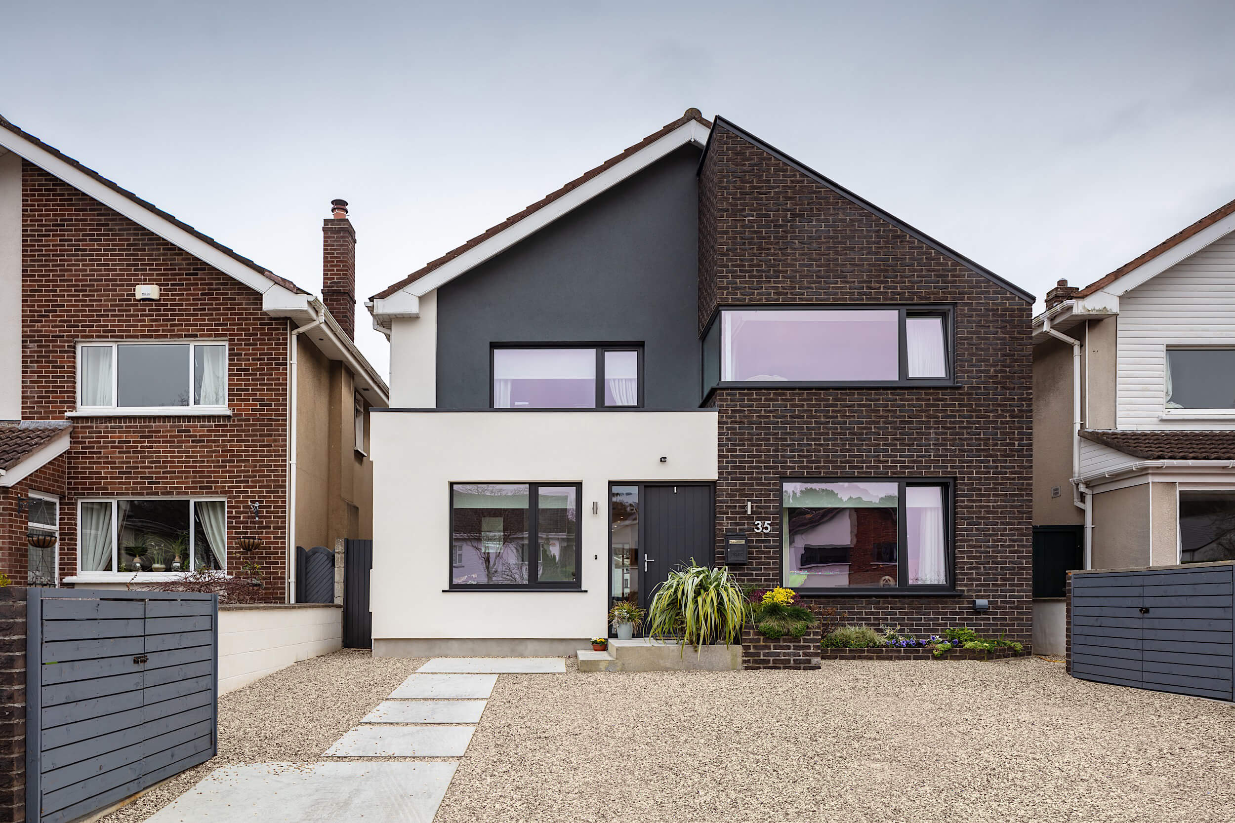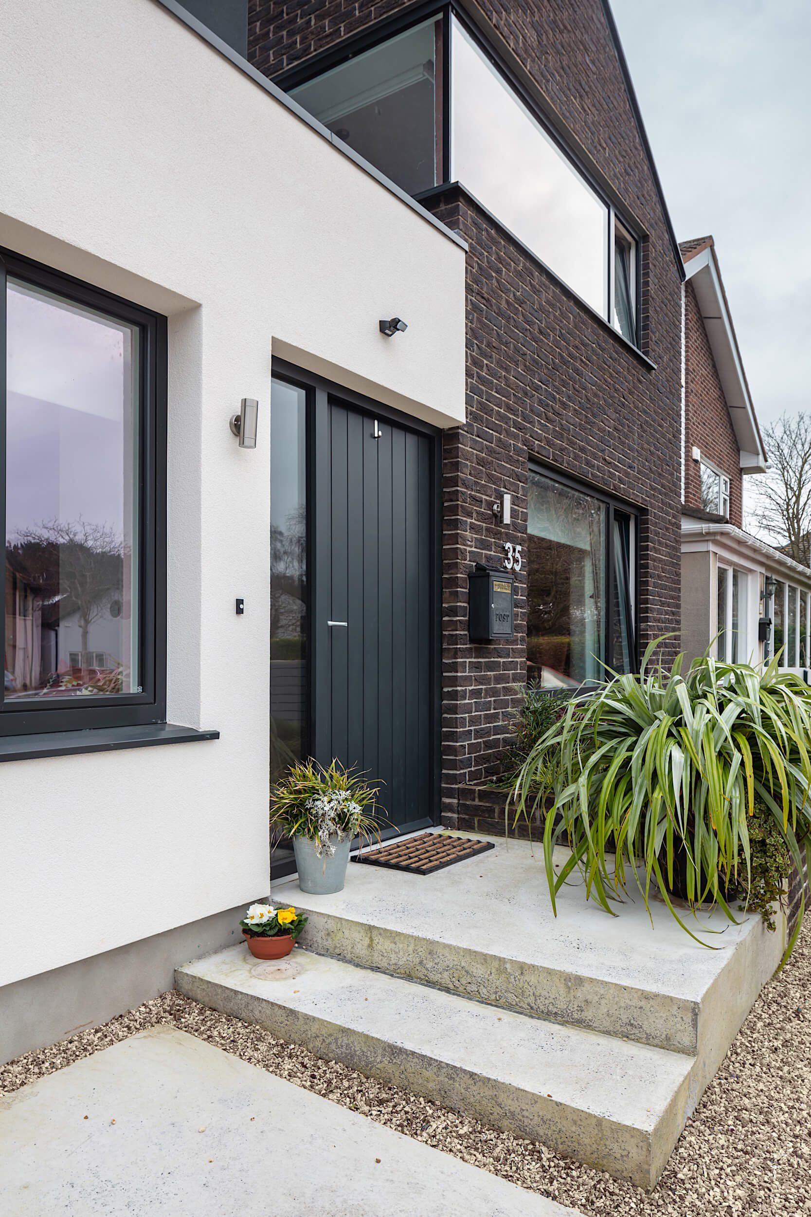 The works included a two storey extension to the front and a single storey extension to the rear. Planning permission was granted in early 2020, with construction completed in 2021.