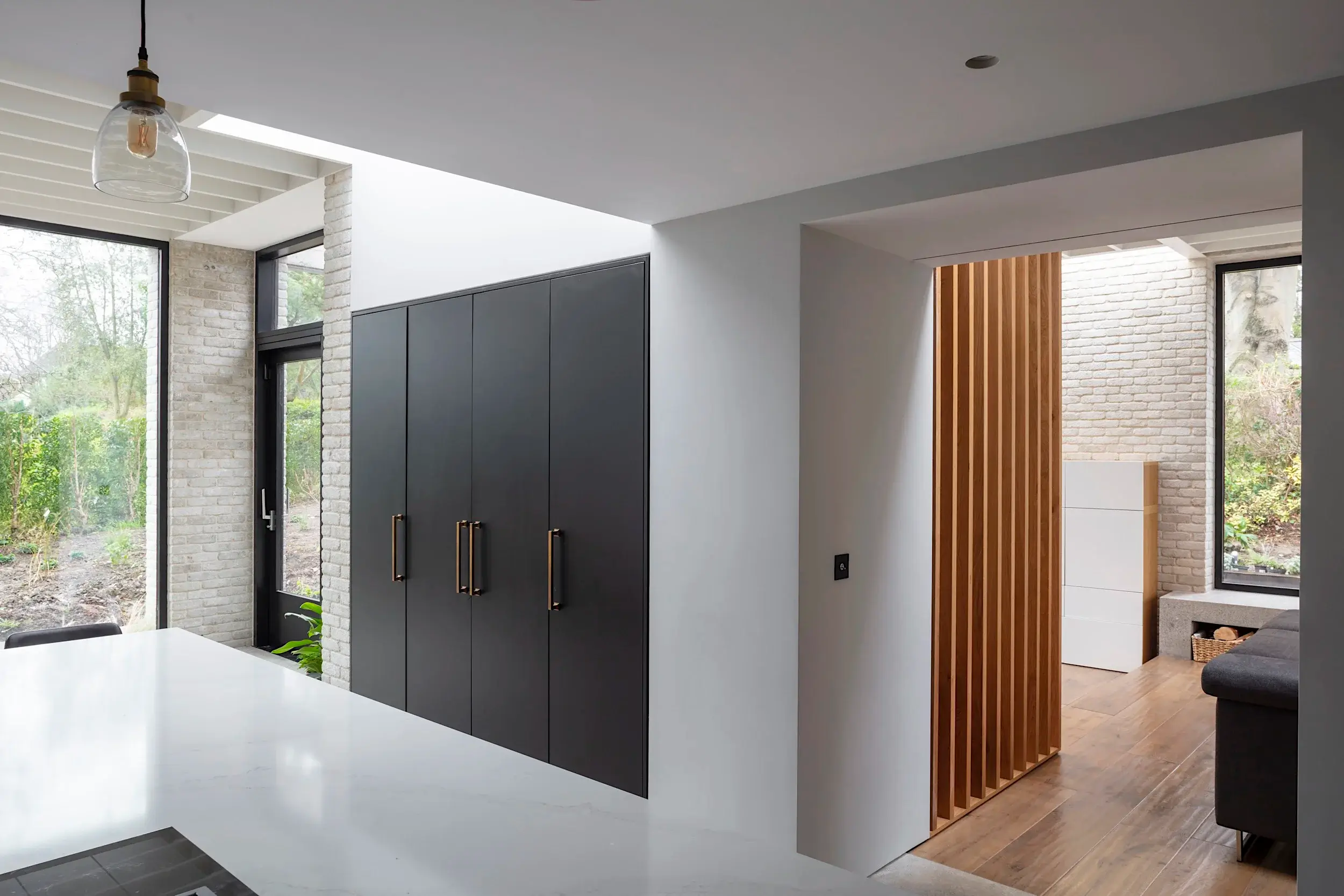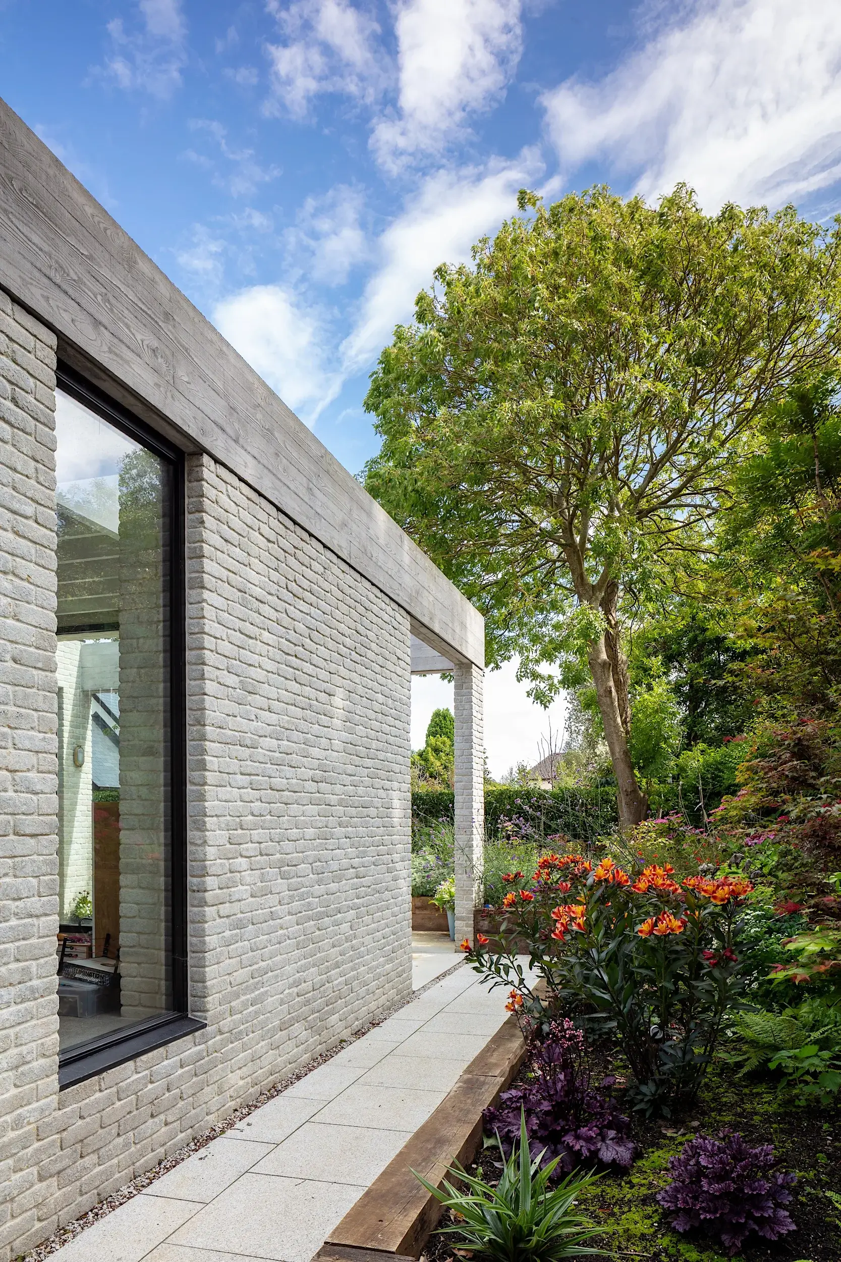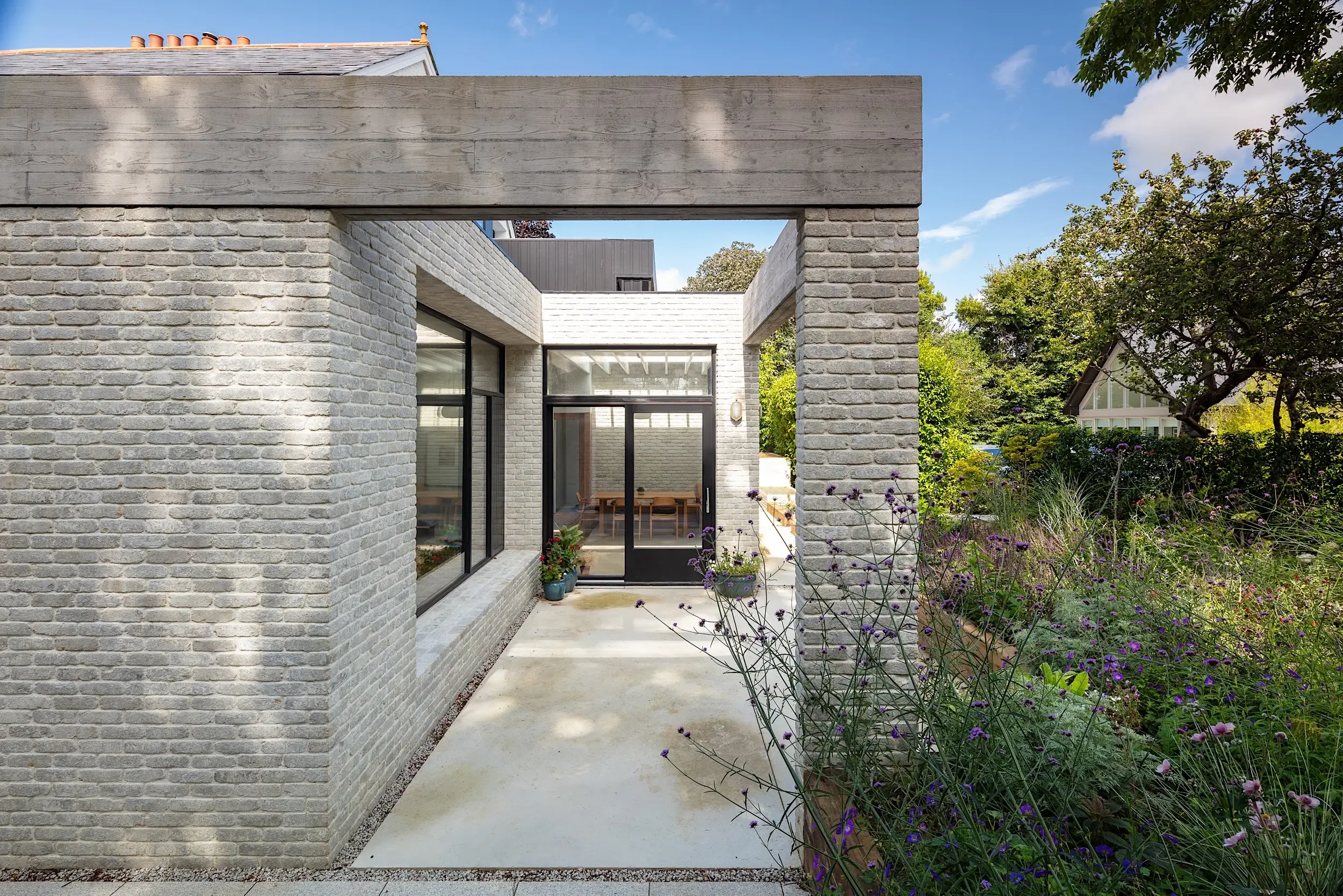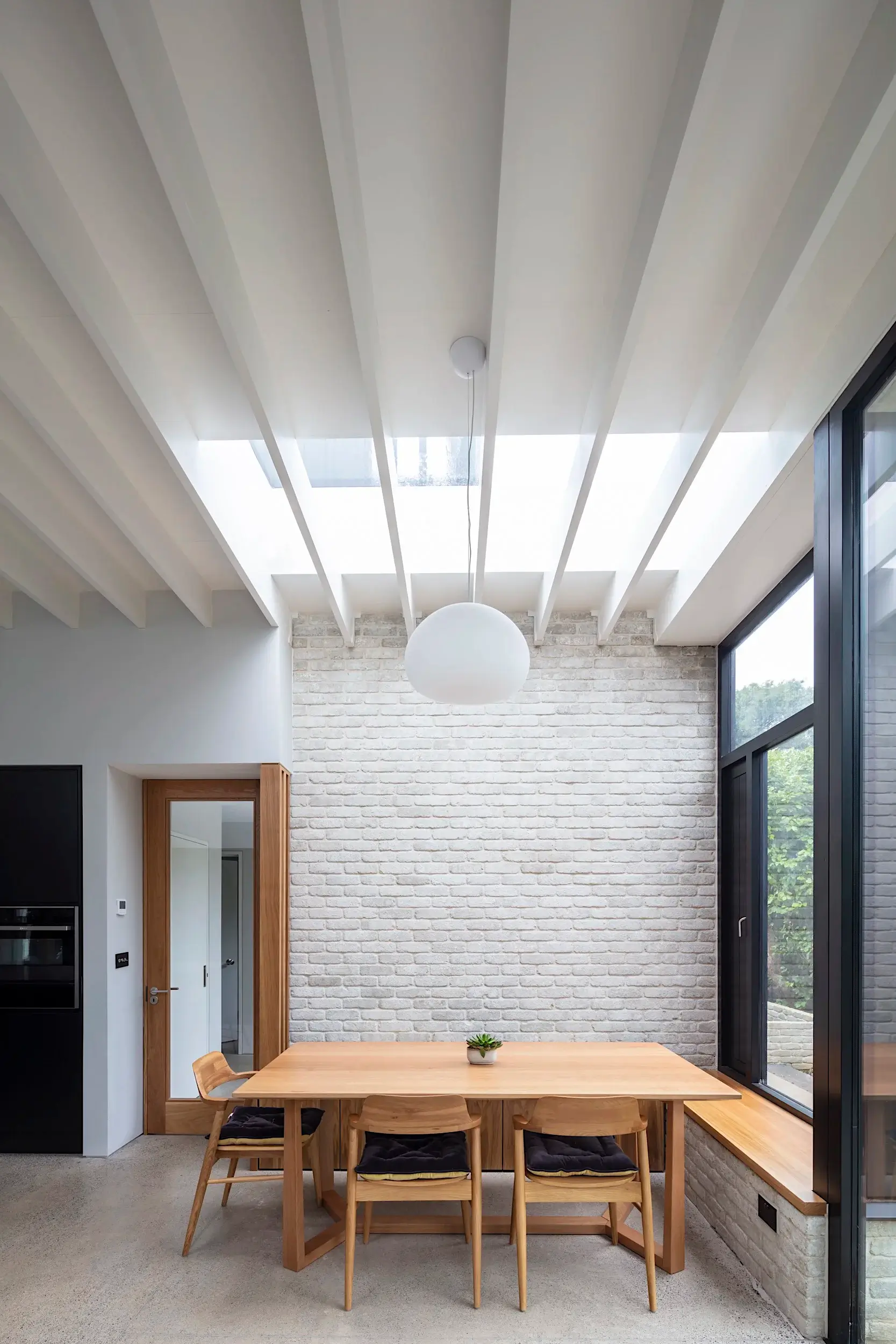 Located adjacent to Malahide Village, the original house, dating from 1912 is set among mature private gardens and framed by large trees. The project involved refurbishing and re-organising the original fabric, supplementing it with additional spaces and connecting the internal and external space providing a contemporary home for a family of 6.